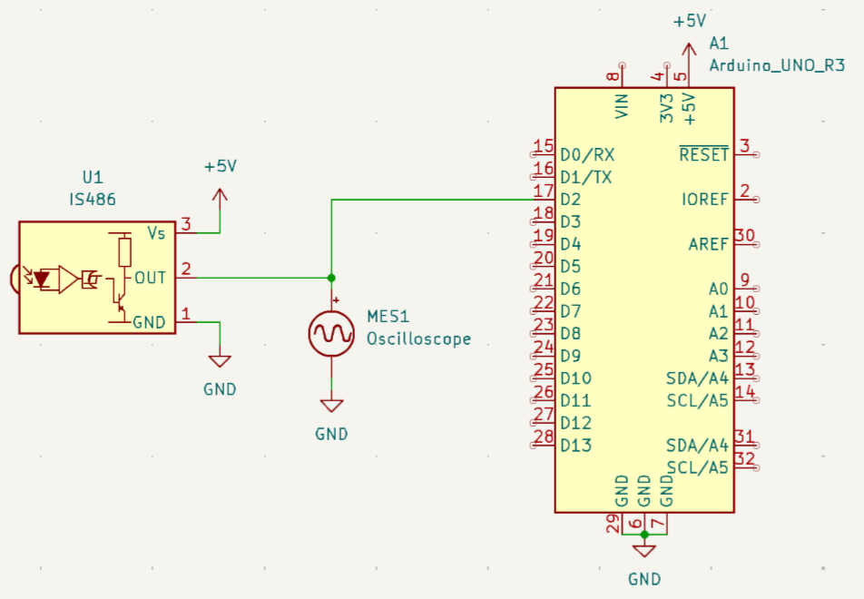 Să vizualizăm semnalul de pe linia SCK a Arduinoului (pinul 13) - analizați, folosind osciloscopul, semnalul, notând timpul de creștere/descreștere (HINT: aveți butonul Measure pe osciloscop).